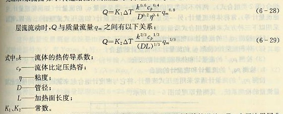邊界層的傳熱系數(shù)h 是質(zhì)量流量的函數(shù),根據(jù)雷諾等的研究結(jié)果,紊流流動(dòng)時(shí),傳遞給流體的熱量Q與質(zhì)量流量qm之間有以下關(guān)系