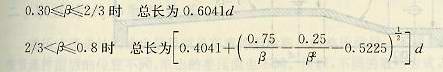 入口平面A是軸線為圓心,直徑為1.5d的圓周和直徑為管道內(nèi)徑D的圓周所圍成的環(huán)形平面,環(huán)寬比為1/2(D~1.5d),表面粗糙度高度參數(shù)Ra不得大于0.0001d。當(dāng)β=2/3時,環(huán)形寬度將為零。當(dāng)β>2/3時,直徑為1.5d的圓周將大于內(nèi)徑D所形成的圓周,此時應(yīng)將噴嘴上游側(cè)端面切去一段ΔL,使平面部分A的最小直徑恰好等于管道內(nèi)徑D,如圖4-6b所示。切去部發(fā)的軸向長度為: