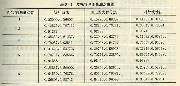 用皮托管測量的關(guān)鍵是如何確定特征點(diǎn)。目前比較常用的有等環(huán)面法、切比雪夫積分法和對數(shù)線性法。