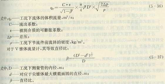 V錐流量計(jì)的原理同樣是基于伯努利和流體連續(xù)性方程:如果流體流經(jīng)一個(gè)節(jié)流件時(shí),流體加速,使其動能增加,被加速處的流體其靜壓力降低。壓降的大小和流體的流速有一定的函數(shù)關(guān)系,在其他條件不變的情況下,壓降隨流速的增大而增大,隨流速的減小而減小。根據(jù)推導(dǎo),體積流量qv: